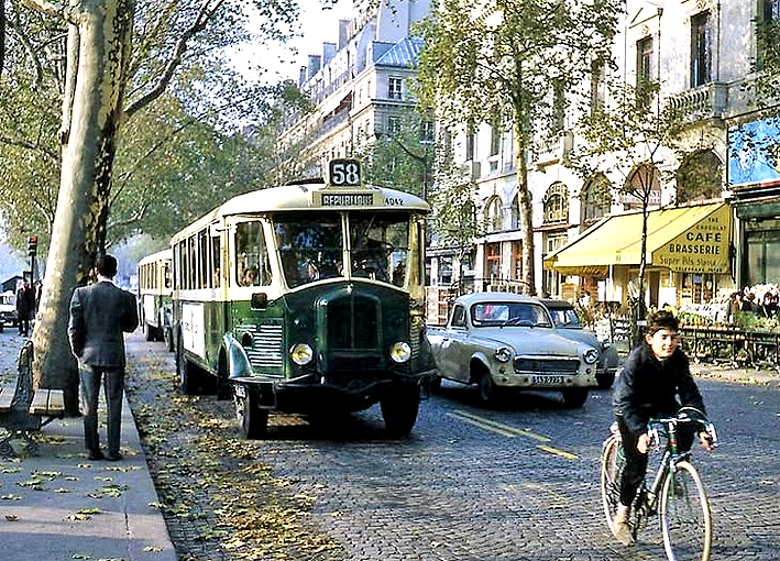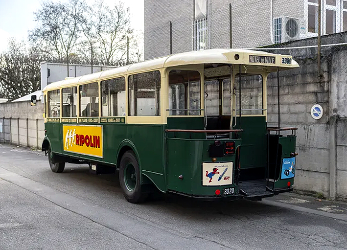 Se trata de un autobús Renault construido por la prestigiosa firma automovilística francesa en el año 1934. La amplitud de la serie de autobuses urbanos a la que pertenece, que vino a sumarse a las de modelos anteriores que venían protagonizando el transporte público en la capital parisina desde principios del siglo XX, hizo convertirla en uno de los modelos más característicos del transporte de la ciudad. Tanto es así que no hay fotografía o película cinematográfica, rodada en exteriores de París, que no cuente con la presencia de algún ejemplar de este emblemática serie de vehículos. Presencia que se extendió desde la década de 1930 hasta la de 1970. No en vano, y dada su inigualable representatividad histórica, el modelo en cuestión ha sido reproducido en miniatura por diferentes casas modelísticas europeas.
