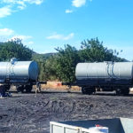 Caso especial es de los vagones cisterna. En primer lugar porque su amplia superficie metálica ha propiciado a lo largo de sus décadas de servicio una constante corrosión que, en ocasiones, llega a ser muy profunda y acusada. Ello nos obliga en la mayoría de las ocasiones a que las labores de chorreo de arena para su saneado, previo a la imprimación, deba ser muy minuciosa y concienzuda, prolongándose varios días de intenso trabajo. No menos problema se nos ofrece respecto a los conductos de descarga y bocas y grifos de cierre, pues rara es la ocasión en que no se hallan absolutamente obstruidos y bloqueados e inútiles todos sus mecanismos de apertura y cierre. Sin embargo, y gracias a los intensos trabajos que estamos desarrollando, también los vehículos últimamente añadidos a los asignados al proyecto, van quedando terminados.