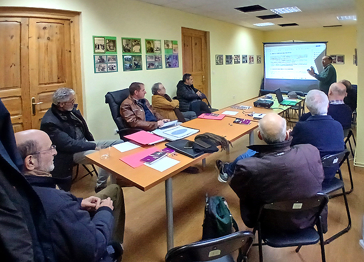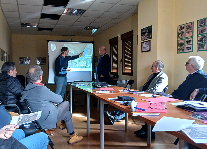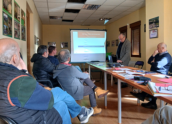 Llegado el momento, el transcurso de la sesión fue interrumpido para acudir al almuerzo que se hallaba servido en el restaurante de la propia localidad de Ircio. Allí fueron degustadas diversas especialidades gastronómicas de la zona, teniendo ocasión todos los presentes de departir agradablemente durante todo el desarrollo de la comida. Finalizada ésta y reanudada la sesión del Comité, tomó la palabra Antonio Gutiérrez, delegado de nuestra Fundación en Sevilla, quien, acompañado de diferente material expositivo, explicó determinadas posibilidades concretas por lo que se refiere al futuro inmediato. Posibilidades que fueron muy bien acogidas por todos y sobre las que se decidió explorar más a fondo los requisitos para poder hacer frente a su materialización.
